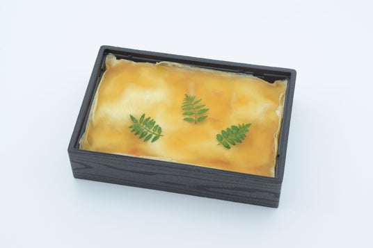 たぐり湯葉を一面に使用し、また、飽きが来ないよう筍と山椒を混ぜ込んだご飯の上に焼き穴子と木の芽を乗せた一品。