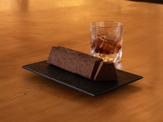 「おたべ会」の契約農家で生産した特別栽培米コシヒカリを自社精米・製粉した生の米粉(※)と、カカオマス70%のビターチョコレートを使用したショコラのバームクーヘンを、国産シングルモルトウイスキーで仕込んだシロップに浸しています。日が経つにつれてウイスキーシロップがしっとりやわらかい生地に染み込み、ウイスキーの芳醇な香りをまとった、深みのある味わいのバームクーヘンに熟成させていきます。