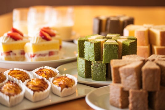 バームクーヘンや生ケーキなど、atelier京ばあむ内の京ばあむFactory(バームクーヘン工場)や京ばあむLab.(洋菓子工房)で職人たちが腕を振るった自慢のスイーツをお楽しみください。