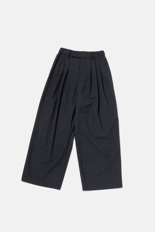 昨年人気を博したワイドパンツが今シーズンも登場。贅沢にフロントタックを3本施したボリューム感が際立つデザイン。すっきりとした腰周りにウエストはゴム仕様で、リラックスしたはき心地と品のあるカジュアルスタイルを両立してくれます。