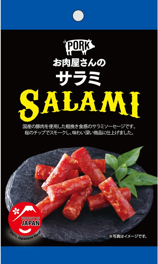 素材のおいしさにこだわった「お肉屋さんの」シリーズは、これまで100g サイズで展開してきましたが、“少量サイズがほしい”というご要望にお応えして、新たに食べきりサイズ(30g)を発売します。あわせて、新商品「サラミ」をラインアップに加えました。お肉のうまみを凝縮したしっかりとした味わいと食感が特長で、“お肉屋さんならでは”のこだわりを感じていただける一品です。
