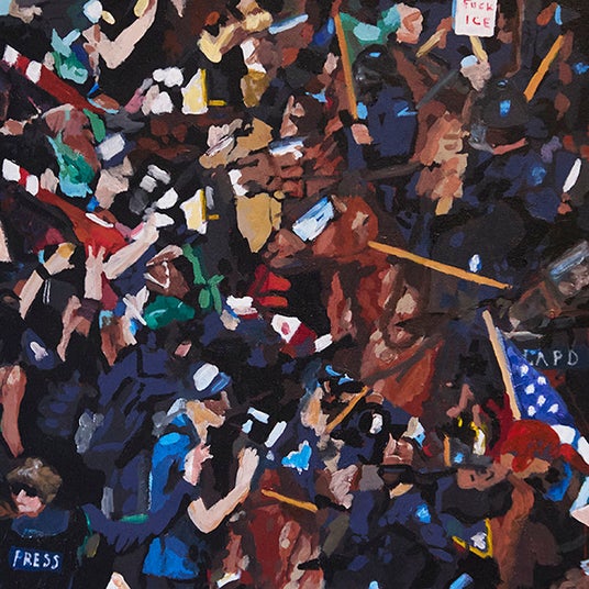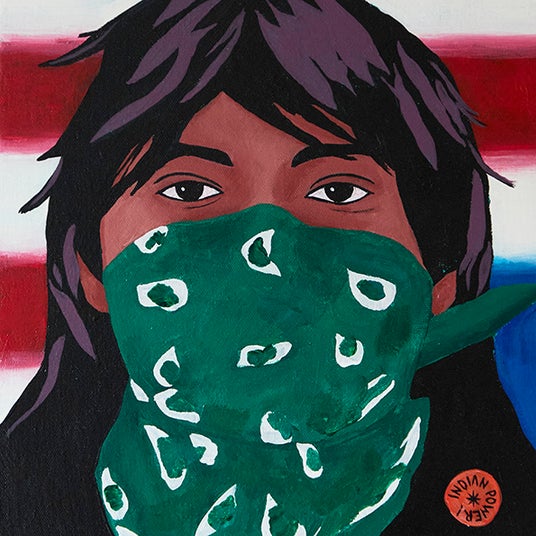 ジェイク・フラグアは、力強く示唆に富む作品で知られるネイティブアメリカンのアーティストです。 ヘメス・プエブロ出身で、アメリカ南西部で育ったフラグアの作品は、アイデンティティ、文化、歴史、そしてアクティビズムといったテーマを多く取り上げており、特にアメリカ国内外の先住民コミュニティが抱える問題に焦点を当てています。 彼の創作活動は、スタジオペインティング、壁画制作、彫刻、インスタレーション、パブリックアートなど、多様な媒体を網羅し、伝統的な先住民の美学と現代的な芸術的手法を融合させた、先住民と非先住民双方の心に響く作品を生み出す才能で知られています。フラグアは作品を通して、固定観念に挑戦し、先住民の問題への意識を高め、先住民の回復力と文化的豊かさを称えることを目指しています。