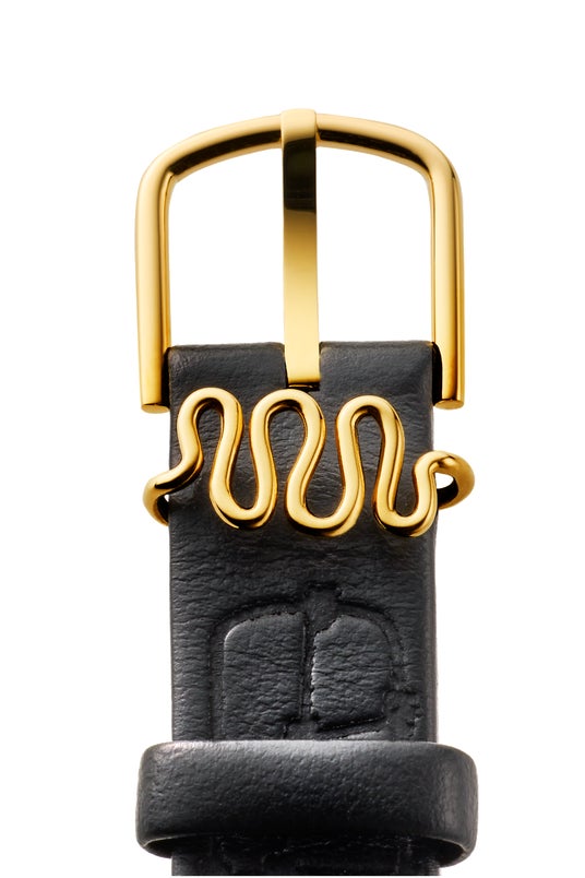 アルネ・ヤコブセンのデザインと違って、手仕事ならではの“ゆがみ”を大切にしているHAyUの作品。この”ゆがみ”というHAyU作品にとって大切な要素を、洗練されたヤコブセンのデザインとどのように調和させるか───そのひとつの答えとして、ワイヤーらしい“ゆがみ”や“つなぎ目”がレザーベルトのエンボス加工により表現されている。