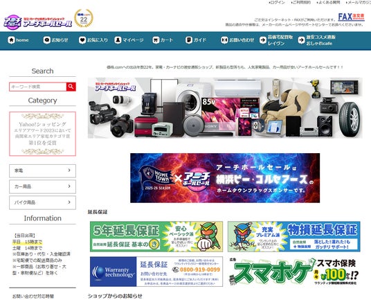 家電通販サイトとして愛され続ける『アーチホールセール』は家電・カーナビジャンルで数々の賞を受賞するなど根強い人気を誇ります。