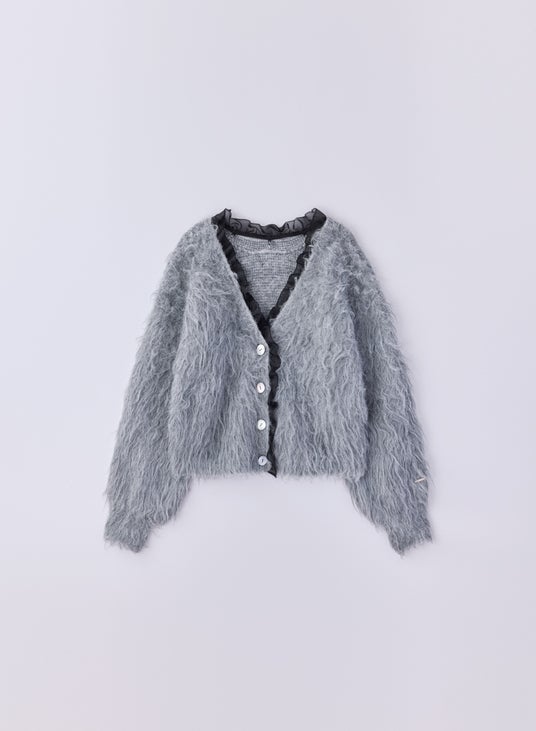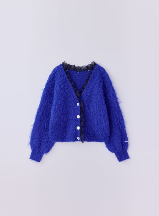 [SET] 2wayファーニットカーディガン ( Royal Blue )+ツイーディーニットパンツ ( Tweed Black )