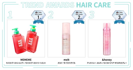 【ヘアケア部門】「MEMEME」が2ヶ月連続で1位を獲得!2位受賞の「melt」も含め、花王ブランドがヘアケアトレンドを牽引