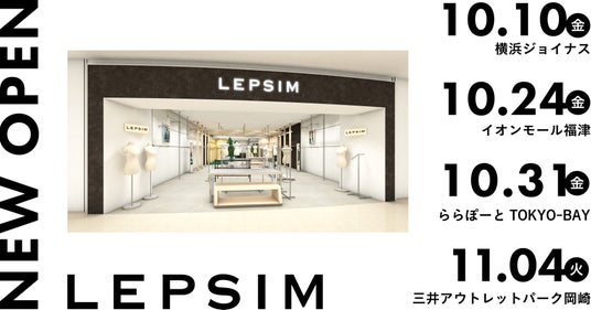 LEPSIMが10・11月に4店舗をオープン!神奈川県「横浜ジョイナス」・福岡県「イオンモール福津」・千葉県「ららぽーとTOKYO-BAY」初のアウトレット店舗・愛知県「三井アウトレットパーク岡崎」