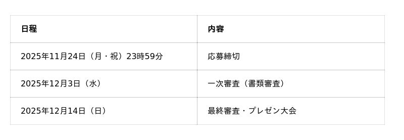 - 応募締め切り:2025年11月24日(月・祝)23時59分