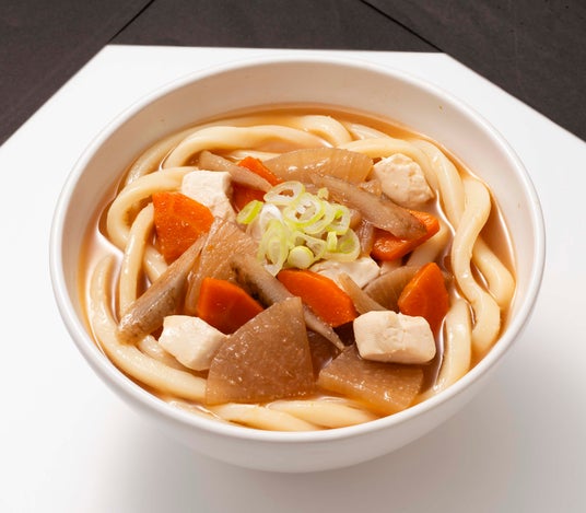 【内容】濃厚なみそベースのつゆにごま油を効かせ、茨城県産の大根など具材を使用しています。茨城県のけんちんそばをアレンジし、コシのある太めのうどんで仕上げました。