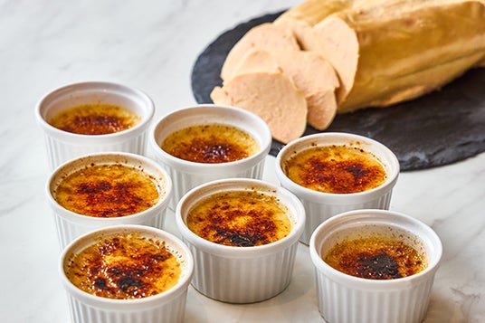 フォアグラのフラン キャラメリゼ<ディナータイム>プリンのように蒸気を使ってゆっくり熱を加え、きめ細やかな食感とフォアグラの濃厚な味わいが絶品です。なめらかなフォアグラのフランと、パリッとしたキャラメリゼの層が織りなす贅沢な一皿をご堪能ください。