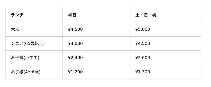 *3名様以上は大人1名様につき、<平日>¥5,350/<土日祝>¥6,250でご追加を承ります。