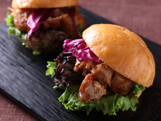 埼玉県産黒舞茸にガーリックを効かせた照り焼きチキンが相性抜群のバーガーを是非お召し上がりください。