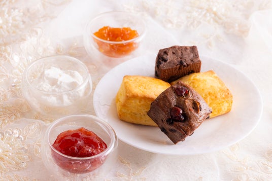 さらに、人参のやさしい甘みとシナモンの香り、コクのあるクリームチーズが調和した優しい味わいの「クリスマスキャロットケーキ」やノンアルコールスパークリングワインとラズベリーの酸味が重なり合う、まるで祝祭のグラスを閉じ込めたような華やかさを持った「ラズベリースパークリングジュレ」のほか、ホテルメイドスコーンにはココア味の生地にクランベリーとチョコレートチップを混ぜ込んだ「チョコクランベリースコーン」と、芳醇な香り高い発酵バターを贅沢に用いた「リッチバタースコーン」をご用意し、ストロベリージャムとアプリコットとオレンジのジャム、クロテッドクリームを添えてご提供します。