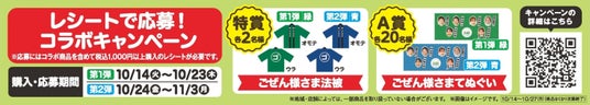 対象商品を含めて税込1,000円以上の商品購入をされた方へ、対象商品記載のQRコードから専用サイトにアクセスし、ご応募いただいたお客さまの中から、番組オリジナルグッズなどが当たります。