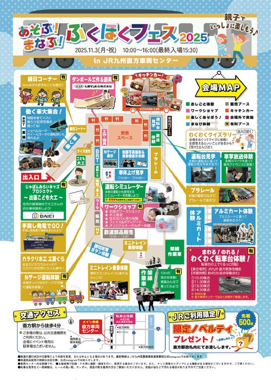 JR九州筑豊篠栗鉄道事業部では、日頃ご利用いただいているお客さまや沿線地域の方へ感謝を込めて、楽しんでいただけるイベント「あそぶ!まなぶ!ふくほくフェス」を開催いたします。