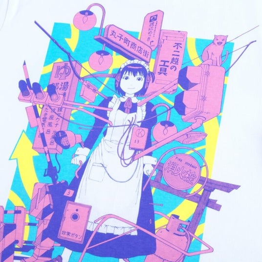 『それでも町は廻っている』の主人公・嵐山歩鳥を中心に、物語の舞台となった丸子商店街が散りばめられた「それ町」Tシャツ発売!胸元には嵐山家の飼い犬ジョセフィーヌがプリントされ、背面には細部まで思わず見てしまう街角サイバーパンク風デザインがパステルカラーでプリントされた、世界観抜群の1枚!