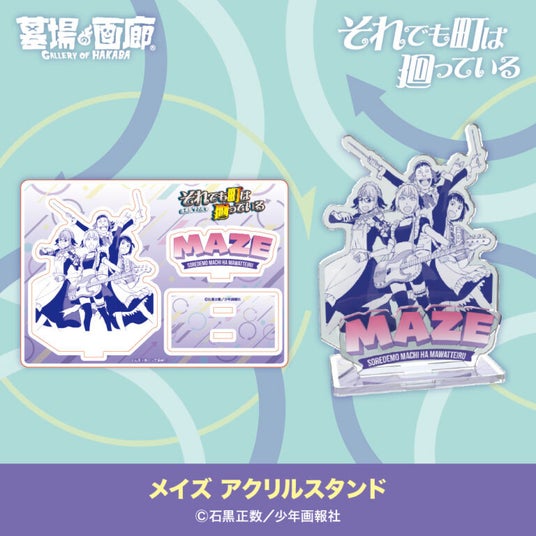 『それでも町は廻っている』作中で、歩鳥、タッツン、紺先輩、春江の4人で組んだ学園祭バンド「メイズ」の姿をアクリルスタンド化!アニメのテーマ曲にもつながった、原作ファンもアニメファンも必携アイテムだ!