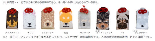 その後、更なるご要望により令和7年7月から4種(マルチーズ・ヨークシャテリア・パグ・シュナウザー)の「犬柄お守り」が追加されました。