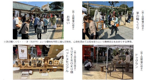 わんこと一緒にお祓いを受け、茅の輪をくぐって、記念撮影が出来るほか、境内にはドッグランの設置や水飲み場、ペット用手水(てみず)、そして当日はペットメモリアル作品「SUKEROKU」様の出店を予定しています。