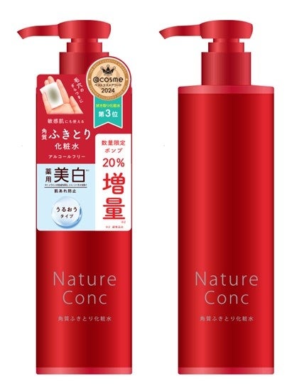 株式会社ナリス化粧品(代表取締役社長:村岡弘義 本社:大阪市福島区)は、ドラッグストア・量販店流通で展開するナリスアップブランドのスキンケア「ネイチャーコンク」の2024年度の販売数が120万本を突破し、過去最高となったことを受け、「ネイチャーコンク 薬用 クリアローション/うるおうタイプ」(販売名/薬用ローションW 10)の20%増量ポンプタイプを10月10日から数量限定で全国の量販店等(一部店舗を除く)で発売します。※1 株式会社 True Data「Eagle Eye」を基にした自社調査 ネイチャーコンク 薬用 クリアローション 詰め替え用 期間:2024年8月~2025年7月 対象:連続アクティブ会員