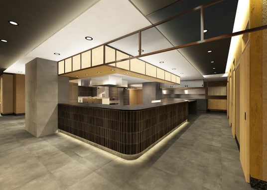『個室会席 北大路 赤坂茶寮』は赤坂・永田町の一等地に位置し、個室を多く持つ大規模店として長く親しまれてきました。リニューアルに当たっては、216席という大規模店でありながらオープンキッチンを採用します。当社はこれまでに多くの板前を育成して、和食の伝統を守り続けてきました。オープンキッチンの採用は経験を積んだ板前たちがその姿を含めてお客様に伝える舞台として位置付けるものです。200席超の会席料理を支える調理空間でのオープンキッチンという独自空間も大きな魅力の一つです。