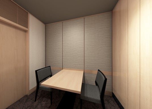 また、 全室完全個室という特徴を守りながら、2名~最大80名まで対応できる個室を用意しました。なかでも2名用の個室は「二人で落ち着いて話せる個室がほしい」といったお客様のニーズをこたえて新たに導入しています。並行して、大規模な会食といった需要にも対応して、永田町や赤坂といった商圏特有のニーズを意識しました。個室は、テーブル席と掘りごたつ席を備えることで、幅広い年齢層や海外の方の利便性を考慮しています。