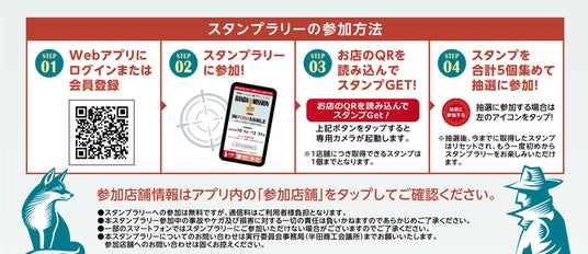 -『半田ミッション:印ポンッシブル』のサイトから登録し、市内の参加店舗(131店舗)でお買物やお食事、サービスを受けて、レジ付近に設置されたQRコードを読み込むとスタンプを1つ獲得することができます。