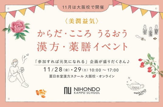 【大阪・梅田で開催】学んで、作って、癒される2日間!1回完結型で気軽に学べる薬膳セミナーや和漢マルシェが体験できる「からだ・こころ うるおう 漢方&薬膳イベント」11月28日(金)、29日(土)開催