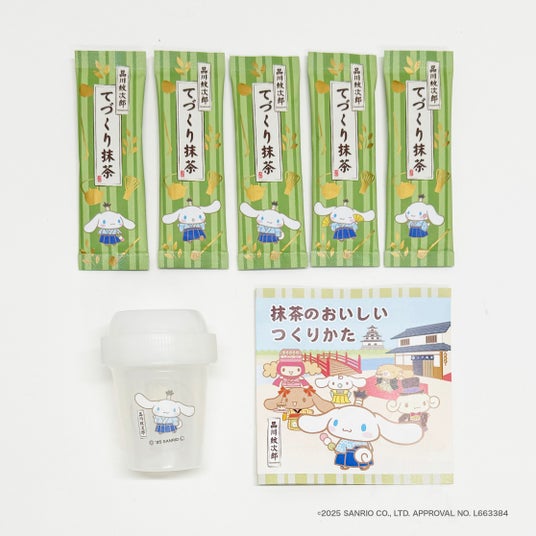 今回は、2022年に発売して以降、ポップアップ会場やオンラインストアで大人気の【 品川紋次郎 てづくり抹茶セット 】をリニューアル。キャラクターのかわいさはもちろん、「有機抹茶が本当に美味しい!」「甘くないのが良い」「抹茶を作ることが楽しくなった」と、抹茶好きにも定評があるセットです。