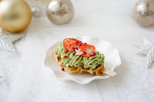 抹茶ホイップの上に鮮やかなストロベリーを飾りつけ、まるでクリスマスツリーのような華やかなクロッフル。甘酸っぱい苺とほろ苦い抹茶の組み合わせが絶妙な、見映えも味わいも楽しめる一品です。