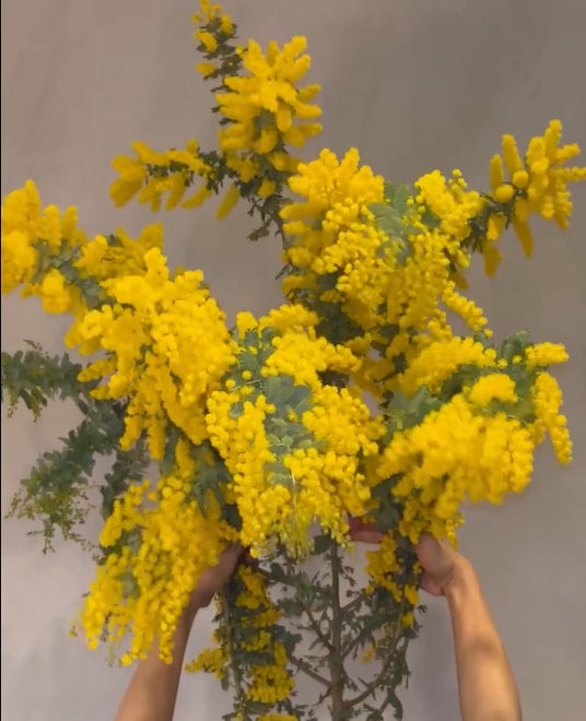 ミモザは箕面市産の希少価値の高いロング丈。ボリュームのある枝を5本セットにしています。