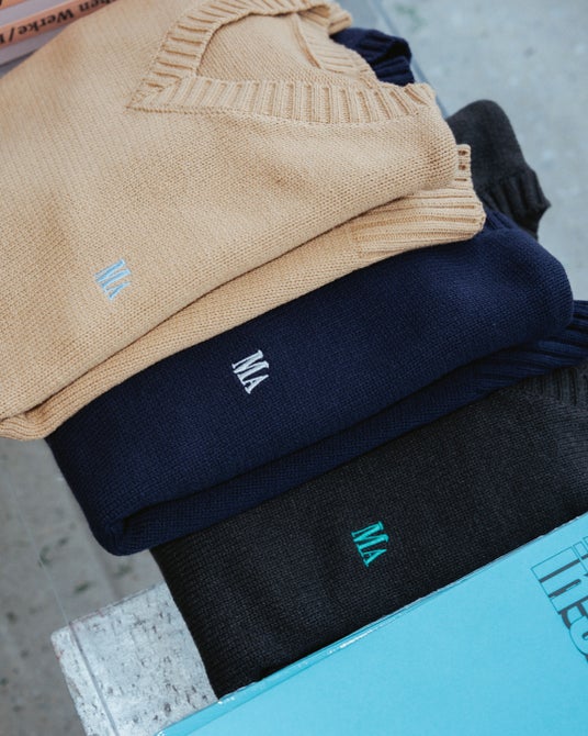 今季から定番化したMAロゴ刺繍を配したクルーネックニット。やわらかな肌触りと軽さを両立するコットン×アクリル素材を採用し、秋から春まで活躍します。適度にリラックスしたシルエットでボトムスを選ばず、古着にありそうなコットンニットのムードに落とし込むことで、ウール調のきれいめに寄りすぎないカジュアルな着こなしが可能。トレンド感をMAの解釈で再編集した、新たな“スウェットの次”としてもおすすめの一枚です。