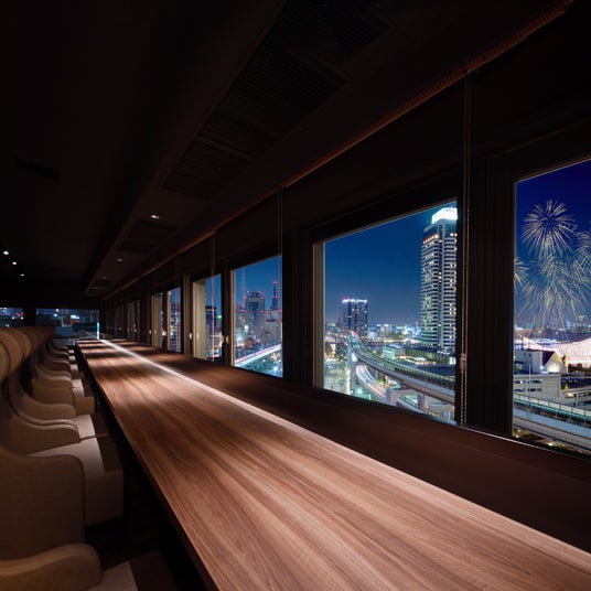 目の前に神戸の夜景が広がる贅沢なカウンター席