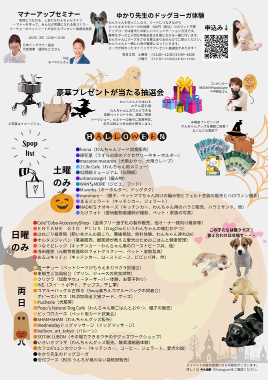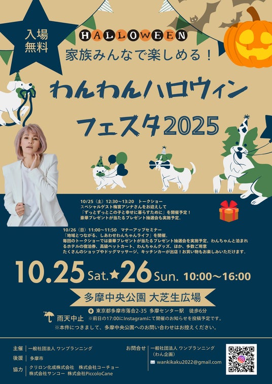 【入場無料】梅宮アンナさんが登場する「わんわんハロウィンフェスタ2025」開催決定!愛犬と楽しむドッグヨーガやマッサージ、豪華プレゼントが当たる抽選会。子ども向け「たまハロ★えほんのひろば」も同時開催