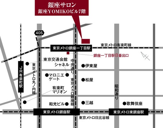 ロイヤル・グランステージ「銀座サロン」<住 所> 東京都中央区銀座1丁目8-14銀座YOMIKOビル7階