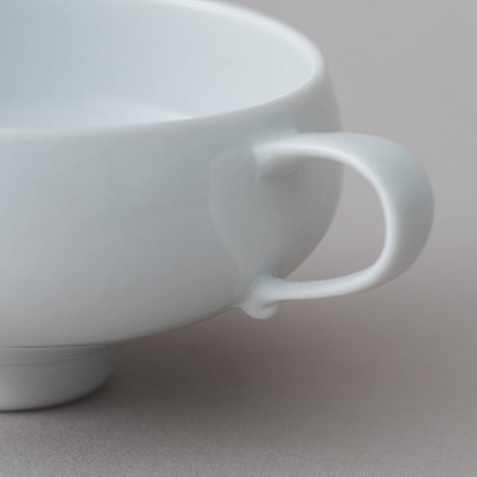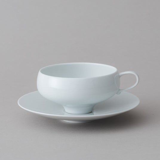 カップは、上側がすぼまった曲線的なフォルム。カップ、ソーサーともに華奢な高台が印象的です。普段づかいにはもちろん、大切な方をお迎えする際の「おもてなし用」としても最適です。
