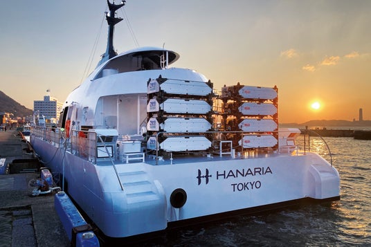 「HANARIA」は、水素とバイオディーゼルを燃料とし、動力源として水素燃料電池、リチウムイオンバッテリー、ディーゼル発電機を組み合わせたハイブリッドシステムを採用しています。このシステムにより、従来の軽油100%使用の船と比較してCO2排出量を約55%削減しています。 振動や騒音が低減され、船内ではゆっくりと会話を楽しむことができ、特にゼロエミッション時には、船の波切音が聞こえるほど静かです。