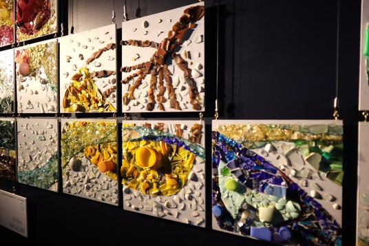 香川短期大学デザインアートコース×四国水族館 海ゴミアート作品 『海洋ゴミで表す瀬戸内海の穏やかな波間とさぬきの自慢たち』を展示
