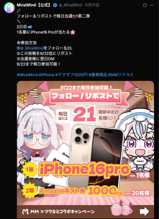 ※当選後はMiraiMind公式Xに当選写真+UIDを提示して賞品交換