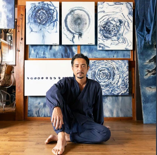 日本伝統の藍と現代左官を世界で初めて融合させた、初代藍左師(あいさし)。独自の技法による作品は、常識にとらわれない作風で多くのファンを魅了し、著名人の個人邸宅や有名ブランドの店舗デザインにも起用される。遠い記憶へとつながる奥深い藍の壁面を創造し、鑑賞者の美しい思い出を呼び覚ます、青の表現者。近年では、藍染師・藍左師養成学校「Pinyon Jay School」を開校。横浜DeNAベイスターズのスペシャルユニフォームのデザインを担当。