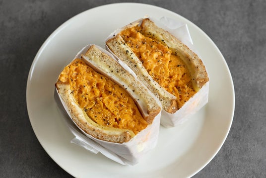 オムレツを楽しめるよう薄切りパンを使用。トロトロ卵と塩味控えめなチーズ、ハムとのバランスが調和し、ボリュームも満点です。