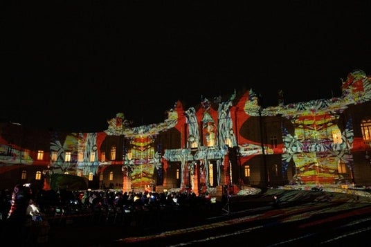 複数台のプロジェクターを使い、自然や建物、そして通行人さえもキャンバスにして、色彩豊かな幾何学模様や抽象的な風景を映し出すデジタルアートになります。