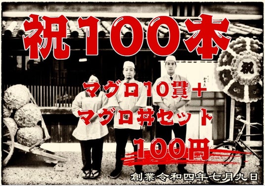 内容:最強マグロセット(マグロ10貫+マグロ丼)を 100円(税込) でご提供