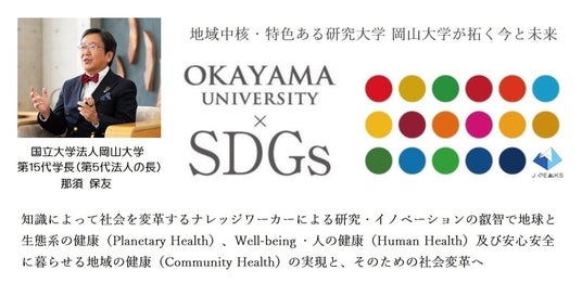 国立大学法人岡山大学は、国連の「持続可能な開発目標(SDGs)」を支援しています。また、政府の第1回「ジャパンSDGsアワード」特別賞を受賞しています。地域中核・特色ある研究大学として共育共創を進める岡山大学にご期待ください