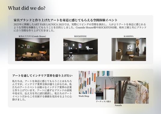 私たちは、このアートフェアを通して様々なブランド様や企業様が他社では表現できない魅力を「アート」を通して伝えていきます。