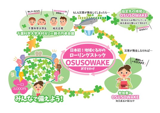 千葉科学大学、地元企業と連携し展開する「OSUSOWAKE」は、地域の魅力を活かし、備蓄と支援を両立する新しい防災活動であり、レジリエントな社会づくりに貢献する取り組みです。日常的に防災を考える人を増やし、地域内外のつながりを深めることで、銚子から全国へ、そして世界へと広がることを目指しています。