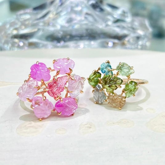 「無い色はない」といわれるほど豊富なカラーバリエーションを持つ宝石です。ピンク、グリーン、ブルー、バイカラーなど、石ごとに異なる表情が楽しめます。