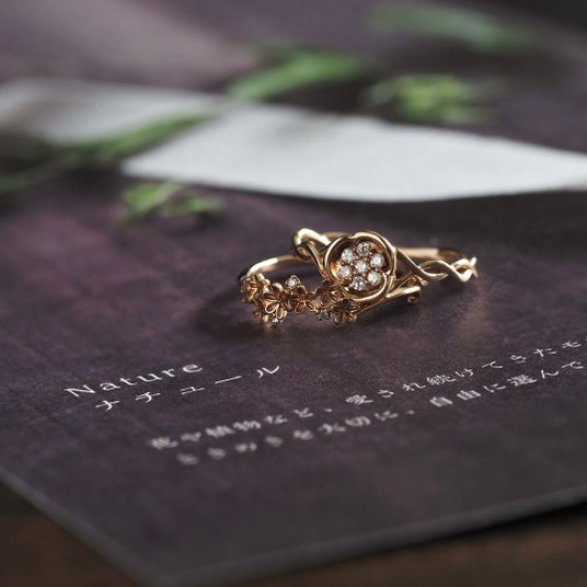 本物の花のようにセッティングされた立体感のあるフォルムと、手打ちのミルグレインが描くクラシカルな佇まいが特徴です。