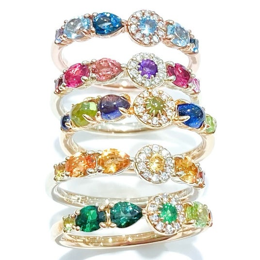 色も形も異なる宝石を一本のリングに詰め込んだ「Cent Couleur(サンクルール)」。