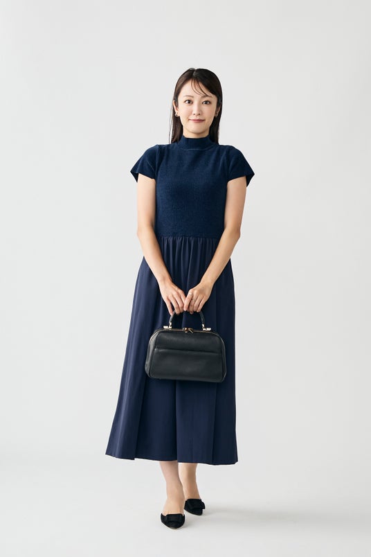 肌ざわりのいいニットとシワになりにくいスカートで着心地◎。